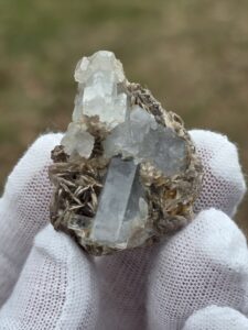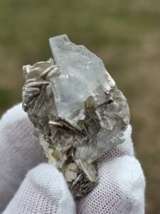 Attractive contrast between blue aquamarine and shimmering muscovite