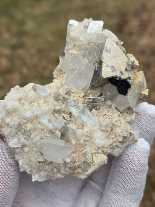 Certified 84.75ct Natural Aquamarine with Black Tourmaline & Feldspar Matrix – Pakistan Pegmatite Crystal