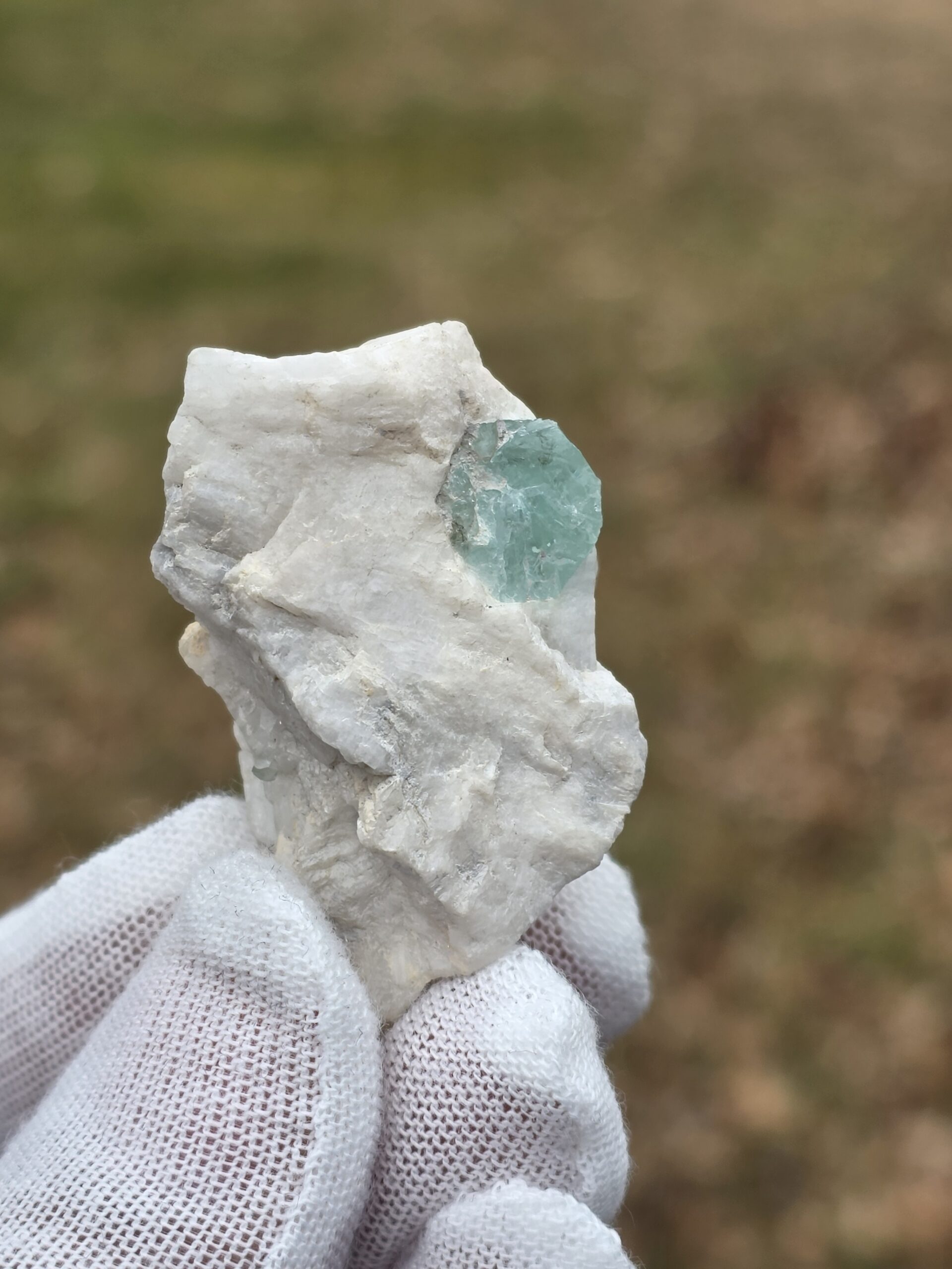 This 156.25-carat aquamarine specimen from northern Pakistan features a well-formed translucent aquamarine crystal set in a natural feldspar and quartz matrix. The aquamarine displays pale blue coloration, visible hexagonal structure, and natural growth zoning typical of Himalayan pegmatite formations. The white feldspar matrix provides strong contrast, while quartz intergrowths highlight the crystal’s natural environment. A classic example of aquamarine in situ from the renowned Gilgit-Baltistan mineral region.