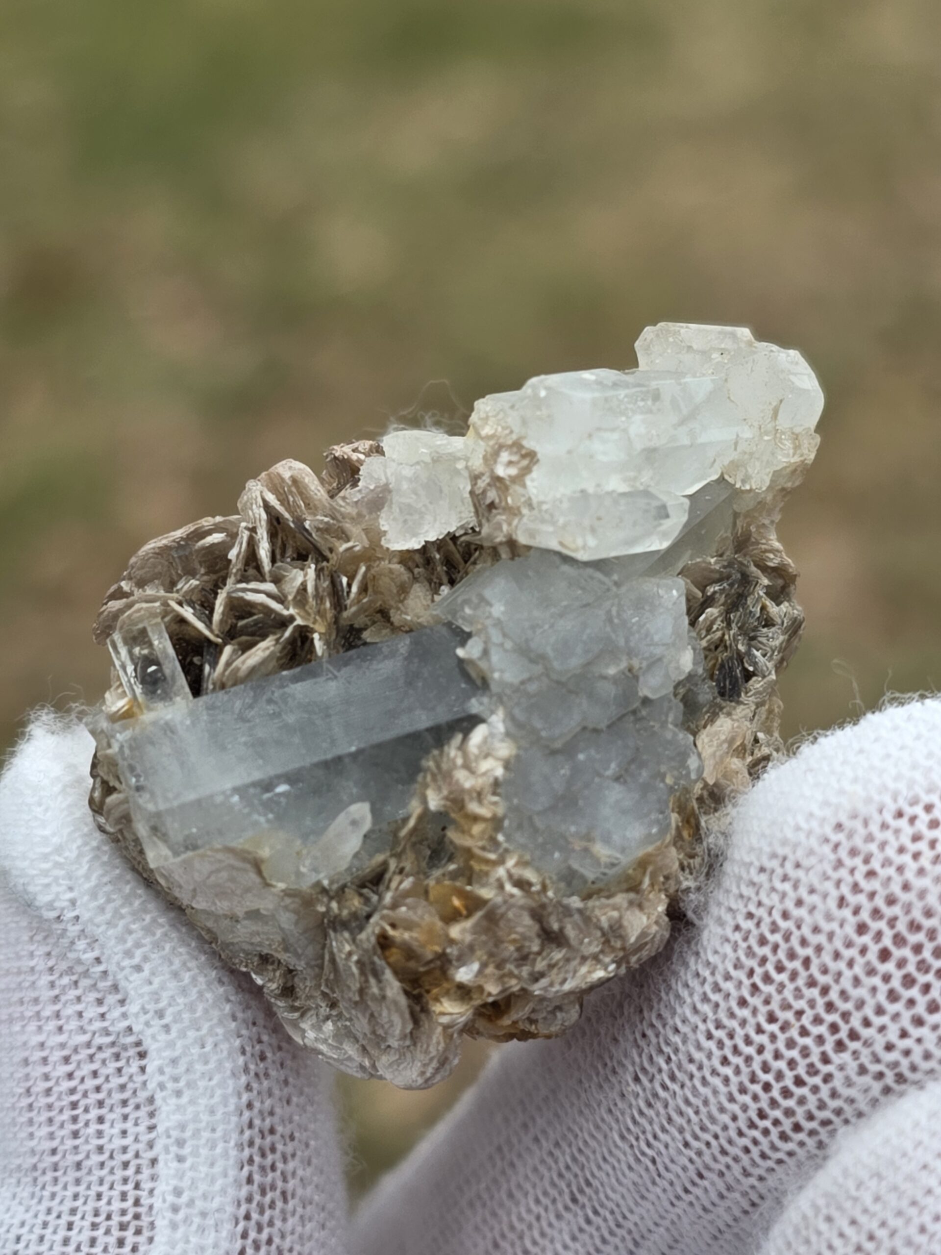 Muscovite-rich zones often host beryl species such as aquamarine, morganite, and goshenite.